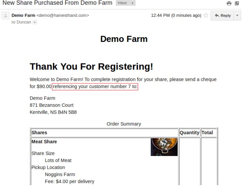 Customer Reference NumberA customer reference number is auto-generated and shown to customer when they are logged in and in relationship to payments. These can be used to reference cheques and bank payments. This was added because customer reference numbers are useful for keeping track of payments and because Strawberry Hill Farm is testing auto-bank payments. Setting up your farm as payee has some challenges, read about Tim’s experience.
