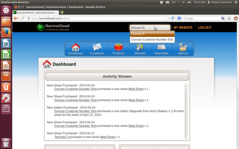 Quickly find/jump to a customer from any page section of the back end of HarvestHand. Start typing a customer name, then use keyboard "up" and "down" arrows and hit "enter" to select customer.