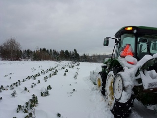From Tim's blog: "I had to plow a path into the Brussels sprouts. The truck still got stuck and needed to be pulled out but at least the crew did get everything harvested that we need."